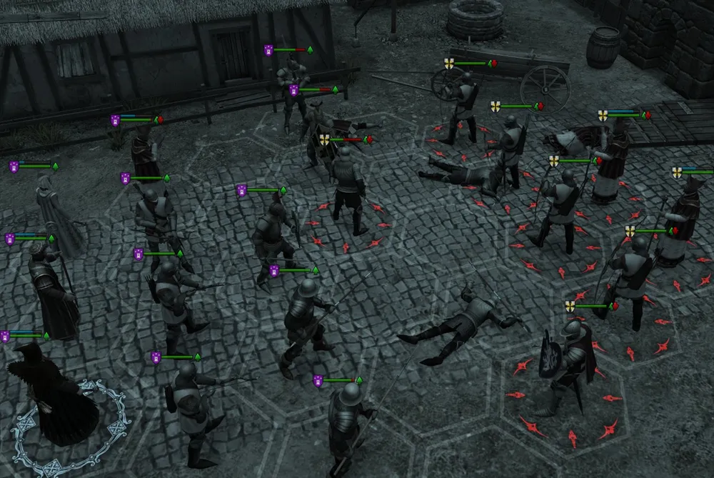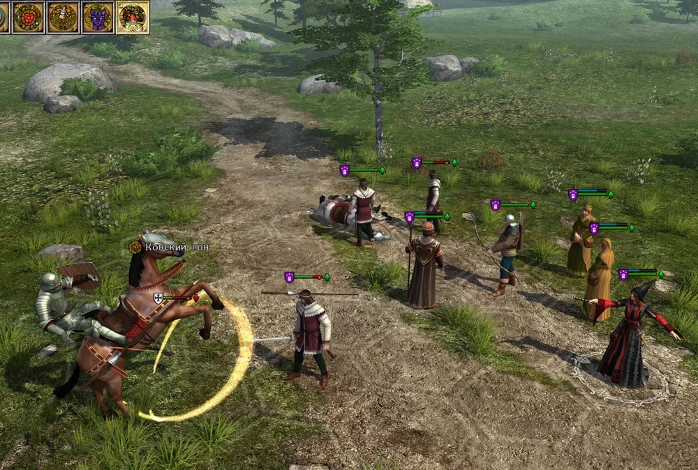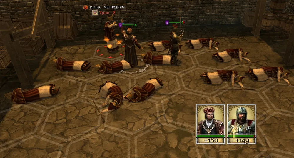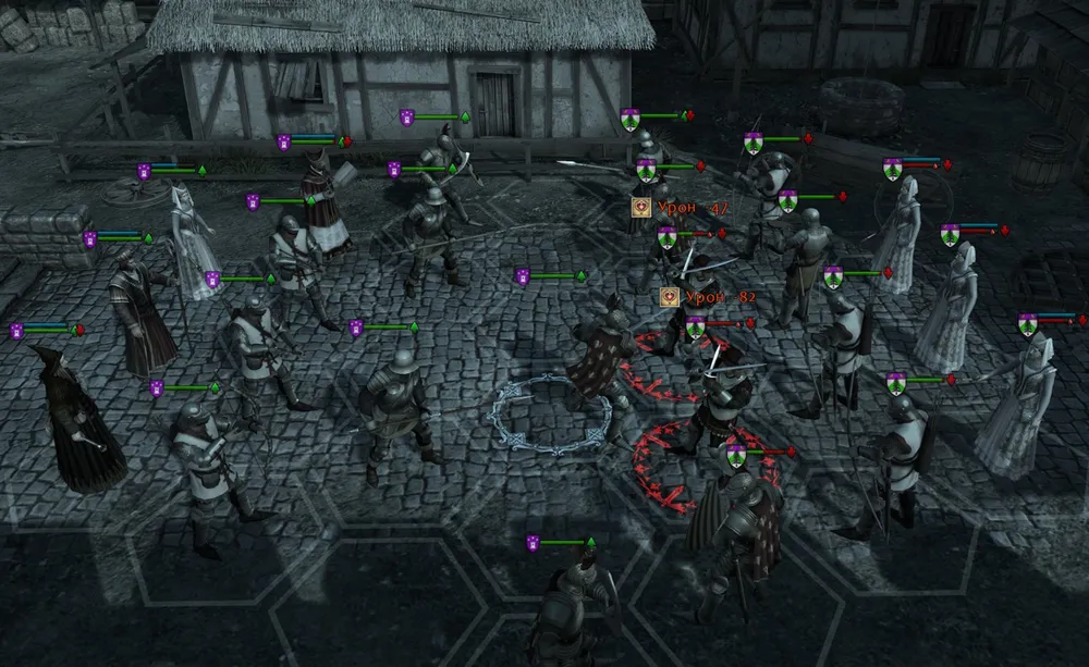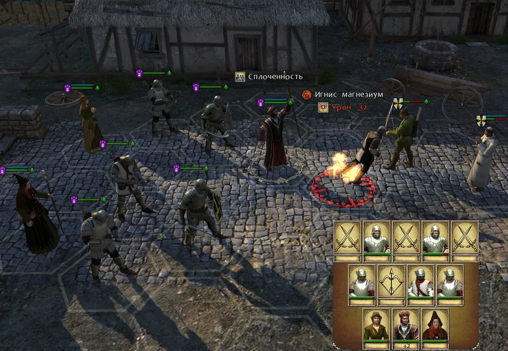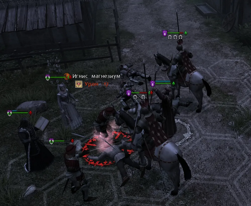 Второй бой: у врага очень серьёзное оружие и доспехи, воин на левом фланге облачён в серебряную кольчугу со свойством «Уклонение». Весь атаки по нему и архиепископу Отто – он не должен сбежать с экипировкой, необходимой Мистику! Пикинёры также контратакуют. Отто убит двумя стрелами, воин в кольчуге также уничтожен. Уф.