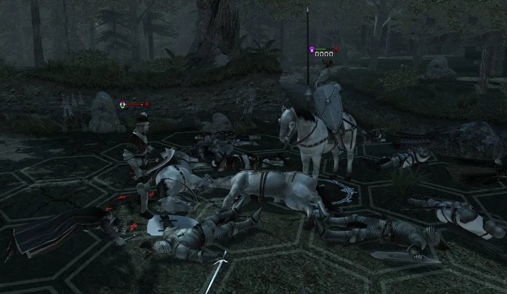 Идём в «Жатецкий Гусь», встречаем посыльного, отправляемся в Виндфельд, нанимаем своего курьера и вновь возвращаемся в «Гуся». Передаём все замки под команду Фихтенам и ждём в условленном месте: ночью, с тремя рыцарями верхом на Камаргах, с навыками «Засада» и «Ночной бой» у каждого. Бой будет непростым, Мистик, скорее всего, пройдёт свой обычный путь, но отряд справится. Главное не позволить вдове вызвать духа, иначе - проигрыш.