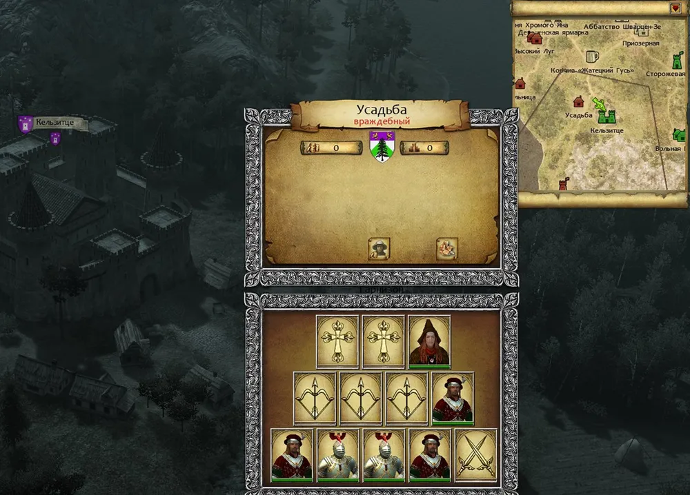 Как только вы доложите канцлеру о конфликте между героем, Диоцезом и Фихтенами, на карте мгновенно появится отряд под командой Ульриха Фон Фихтена и начнёт отбивать захваченные строения, уничтожая беззащитные гарнизоны. Поэтому перед докладом стоит поместить в Орлиные врата сильный гарнизон, чтобы не выпустить злодея в долину. (Возможно, вам удалось подкараулить его раньше - у меня был такой случай, – Ульрих сам предупредит о безопасности заселения замков в предсмертной речи.)