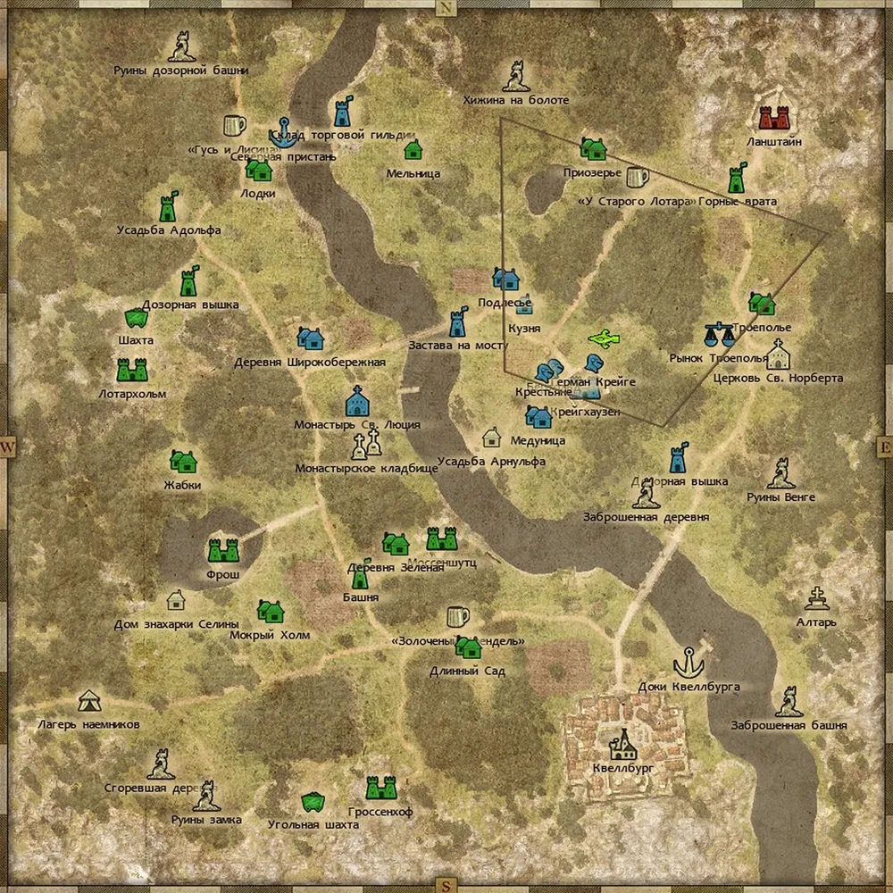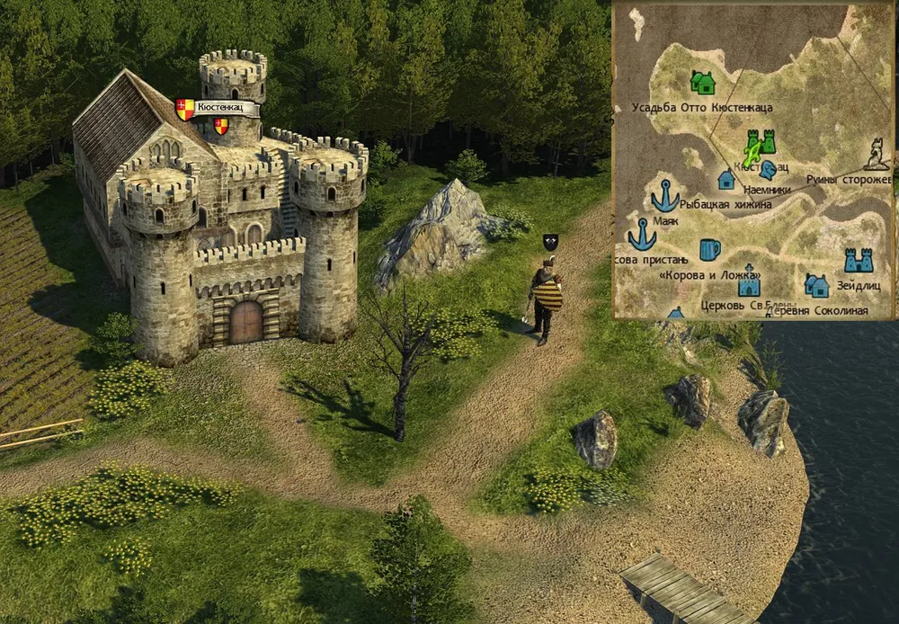 Остаёмся в замке, дожидаясь визита хозяина. Попытайтесь сохранить игру и уменьшить численность отряда: вдруг получится? Докладываем Зейдлицу об успехе и получаем следующее задание – разузнать, кто высадился на пристани? Не теряйте ни секунды, быстро бегите в замок Кюстенканц; наёмники будут значительно ослаблены штурмом ворот.