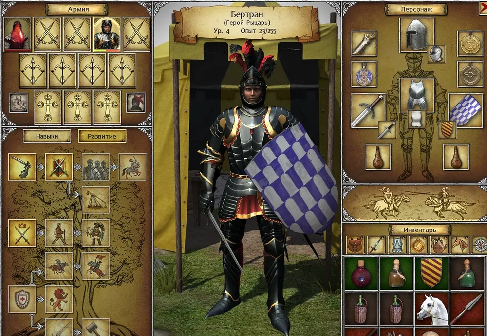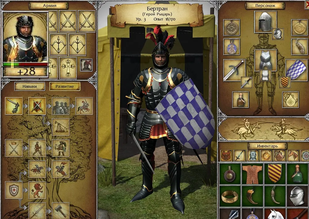 Пеший рыцарь блокирует большинство стрел щитом, сравнительно легко переносит атаки копейщиков и, будучи вооружён мечом (только одноручным!), исправно отвечает на все фронтальные вражеские атаки. Следовательно, нашим героем должен стать пеший рыцарь, и только он!