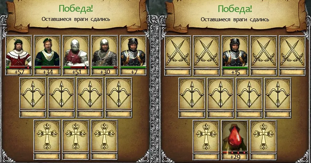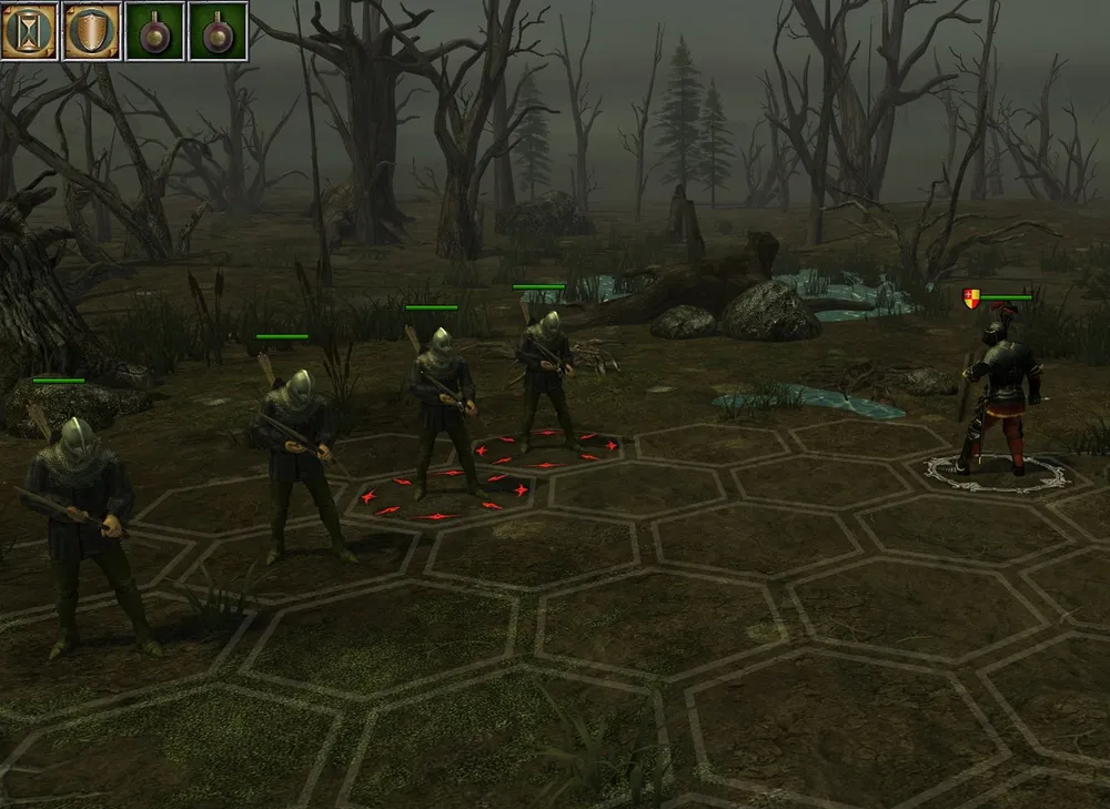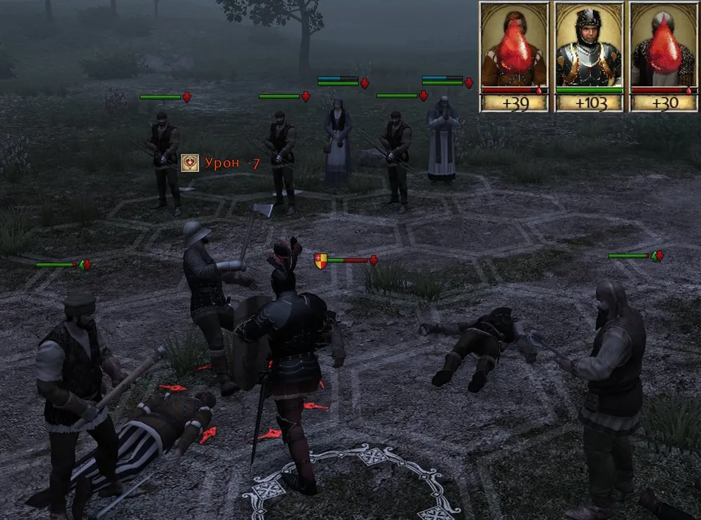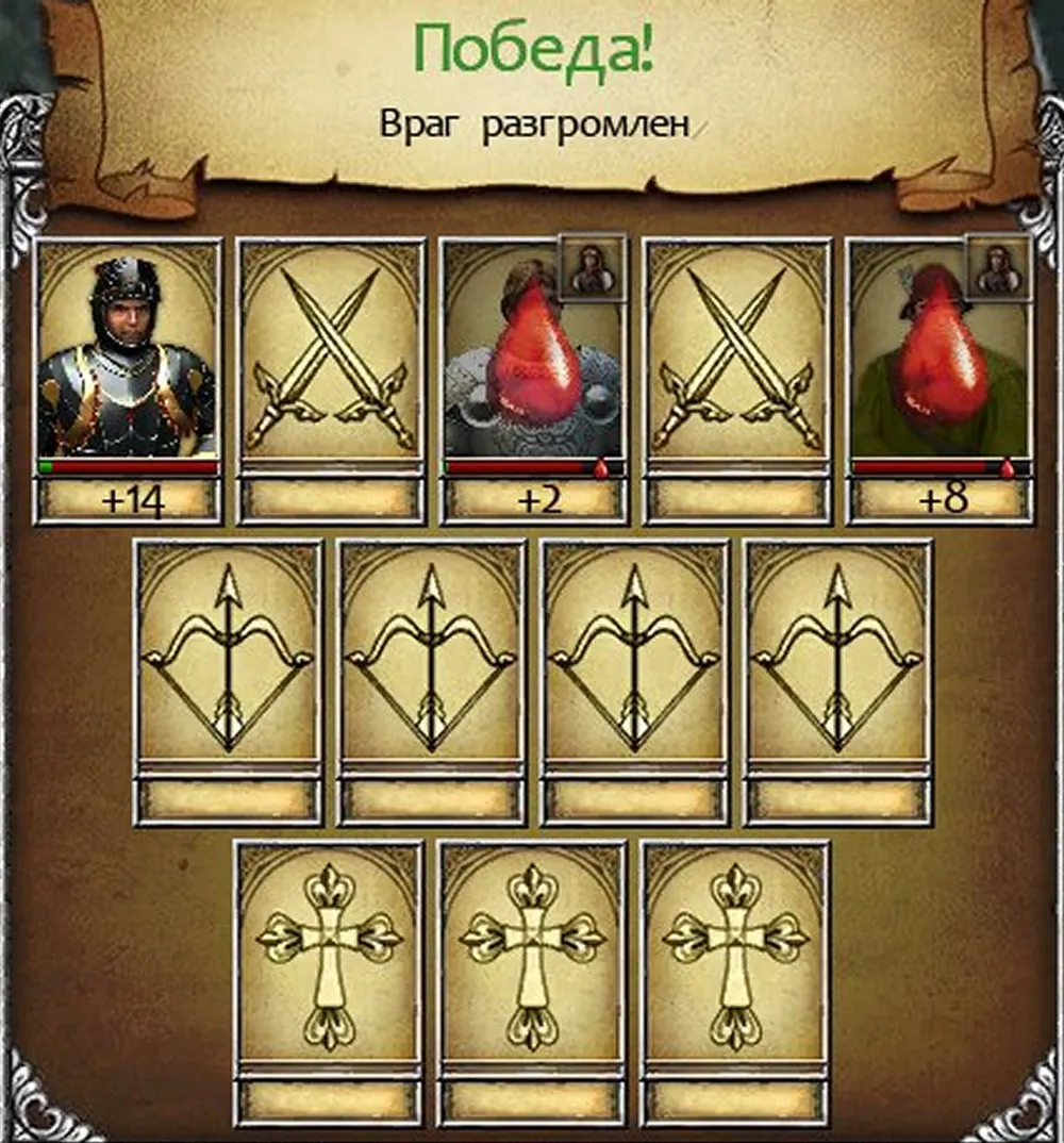 Если на пути оказывается слишком многочисленный и сильный вражеский отряд, можно атаковать его при поддержке двух спутников. Занимаем крайний ряд, причём герой стоит в центре: как наиболее сильный воин; наносящий удары двоим врагам. Возможно, спутники погибнут, но рыцарь успеет ослабить врагов и завершит начатое, получив больше опыта.