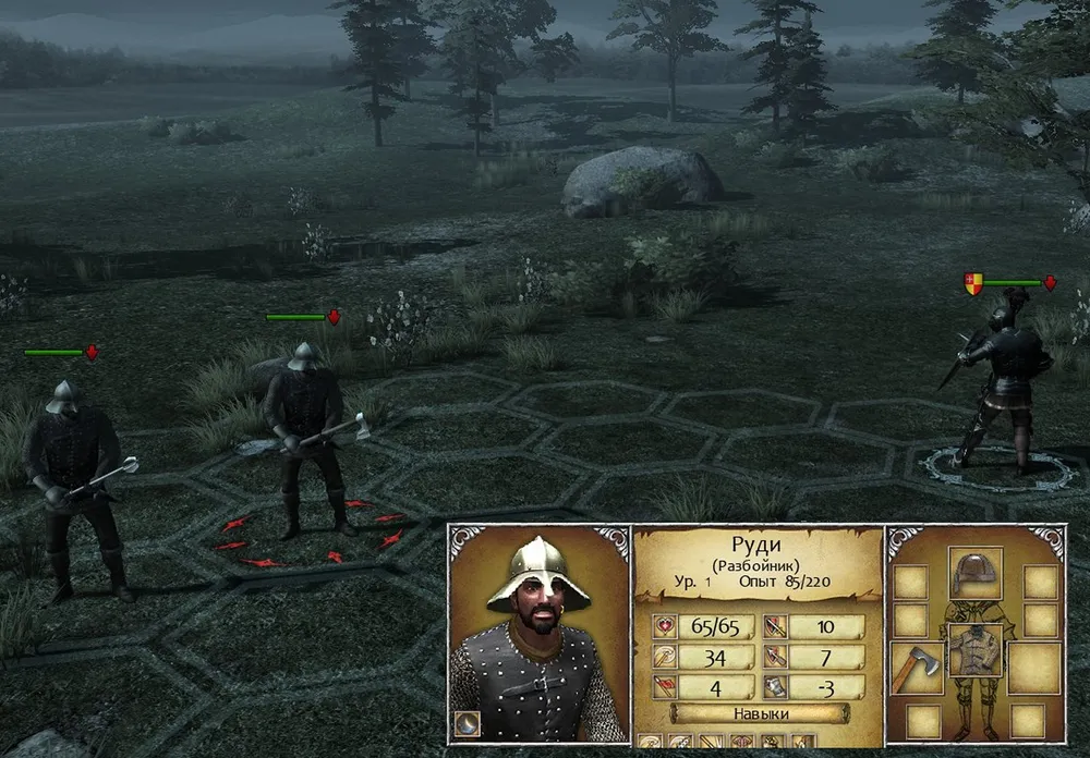 Молодые дворяне требуют постоянного контроля. Стоит зазеваться, и вместо эсквайра вы получите бесполезного дуэлиста. Именно на него в первую очередь направляются все дистанционные и пешие атаки врагов; даже став бретёром, дуэлист погибает первым из-за лёгкой брони. Как славно было в "Neverwinter Nights": воин в тяжёлой броне, в каждой руке – по полуторному мечу. Всё живое и неживое в ужасе разбегалось, едва завидев этого монстра. А здесь что? Лёгкая броня, меч и кинжал: смазка для вражеских клинков, не более того.