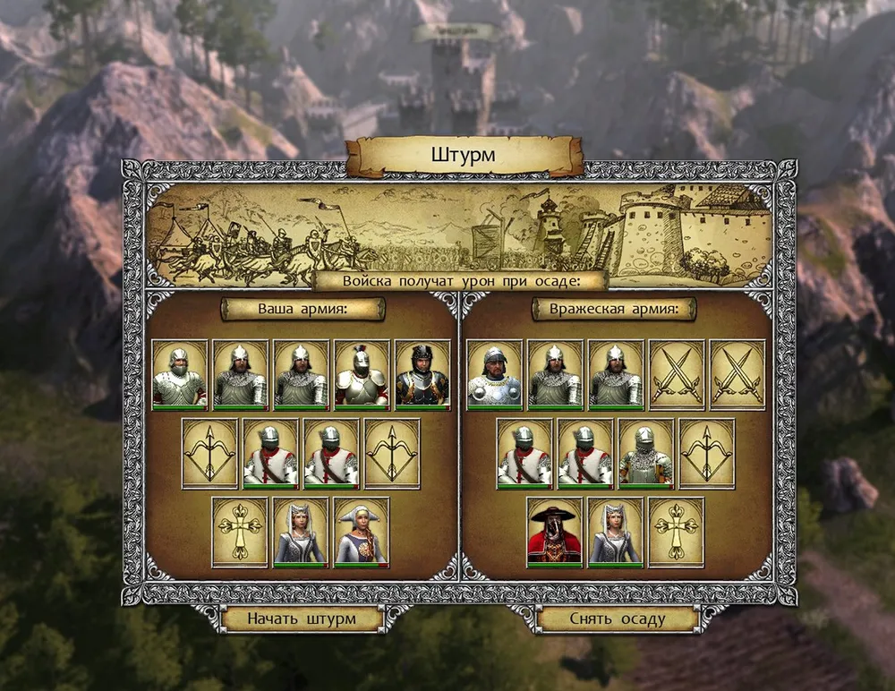 Теперь спешим к деревне Жабки; рядом с ней бродит ещё один отряд восставших. Как только они посетят деревню, захватываем её и истребляем непокорных. Следующий пункт – монастырь; соглашаемся помочь. Монахи обороняются и отступают, сражается рыцарь.