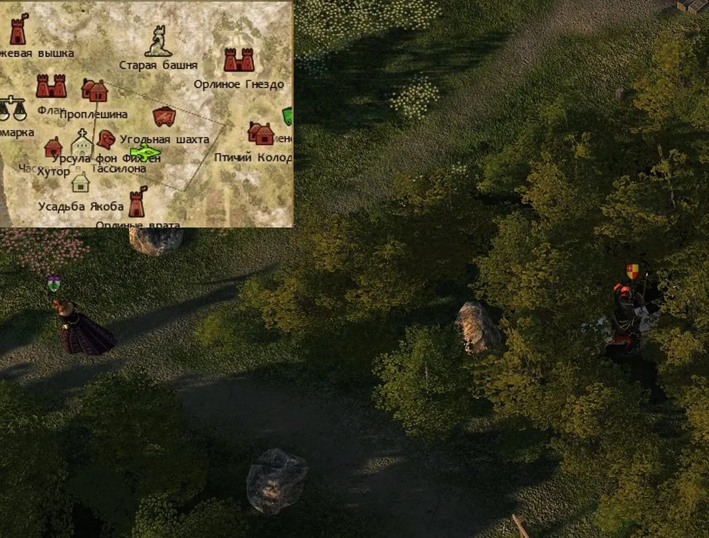 Но Урсула всё же преподнесла сюрприз рыцарю, находившемуся в засаде! Если просто стоять на месте, вдова не появится; приходилось рыскать туда – сюда вокруг камня. Несколько раз подряд Урсула возникала в тот момент, когда герой въезжал в лес. Время останавливалось, вдова спокойно проходила мимо, игра повисала. Учитывайте такую возможность!