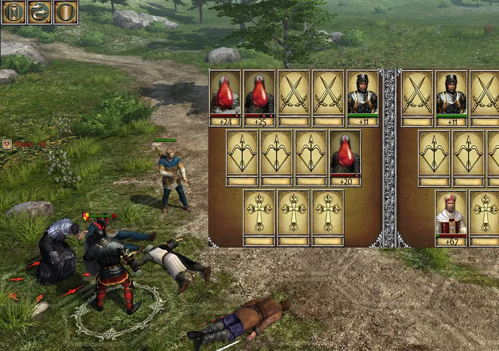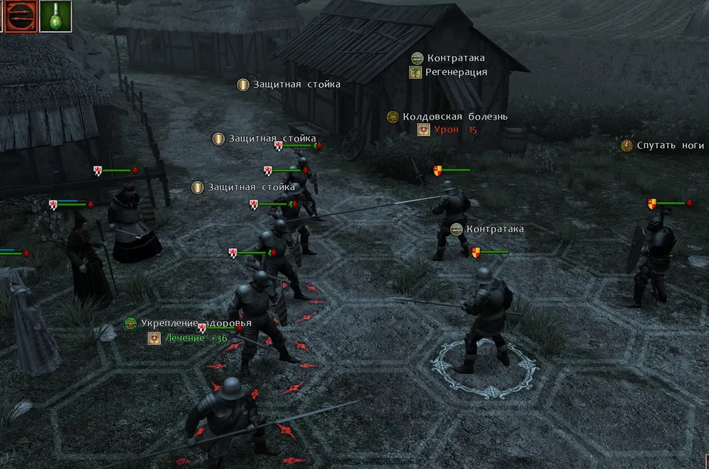 Рыцарь выпил зелье усиления удара? Все атаки – на него! Пикинёры ранены, а рыцарь – болен или отравлен? Подождём, пока его здоровье не упадёт до нуля! Герой вылечился? И те враги, что стояли до конца в предыдущей попытке, моментально сбегают, лишь дело запахнет жареным.