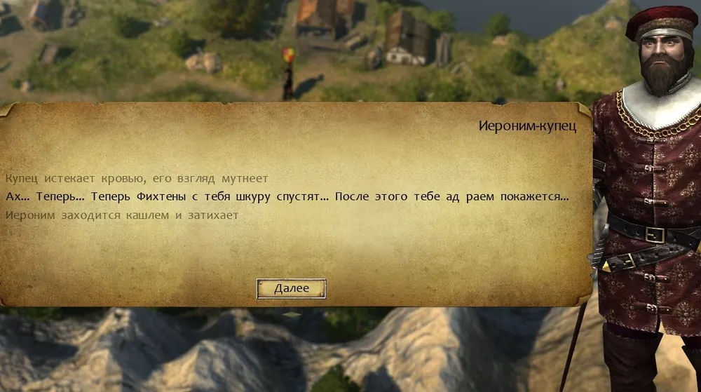 Во время работы на Урсулу Фихтен я проверил, имеют ли под собой почву страшные угрозы купца, не пускавшего героя через переправу во время бегства – не подтвердилось.