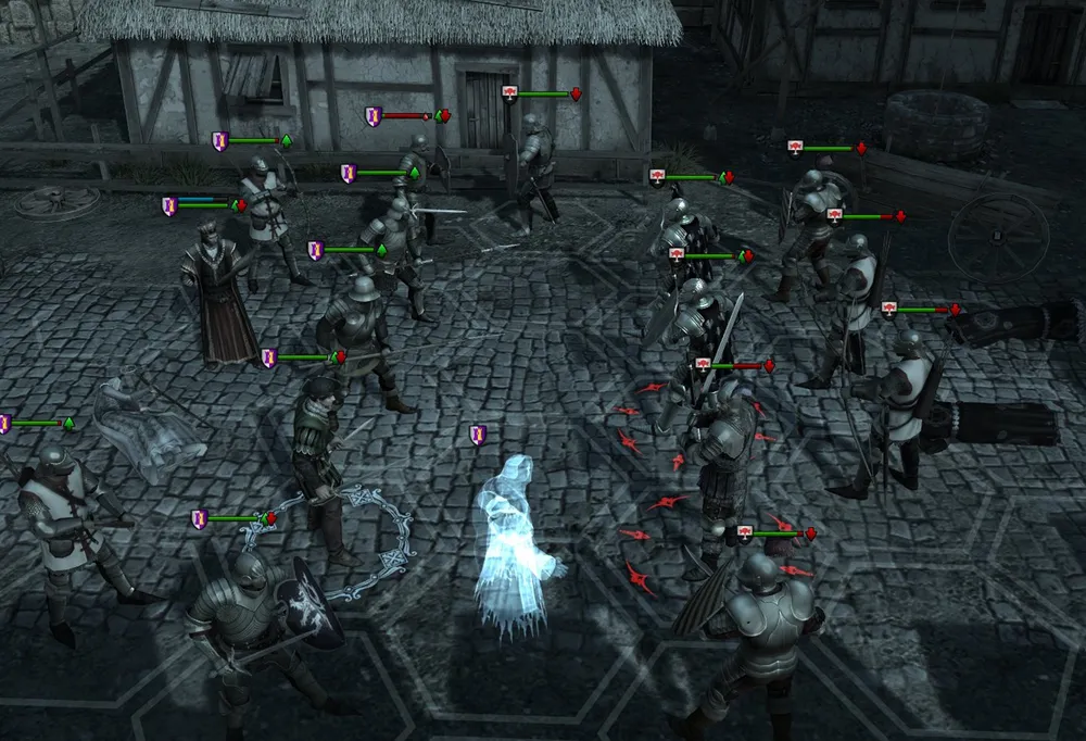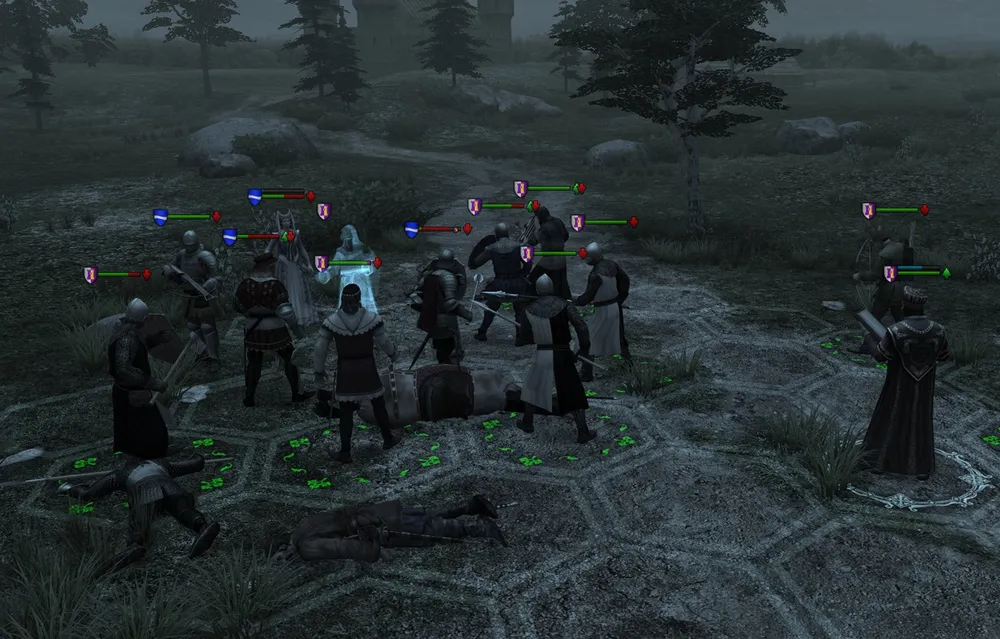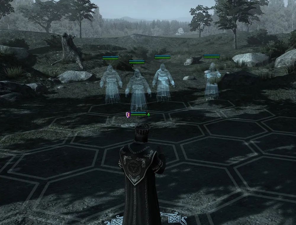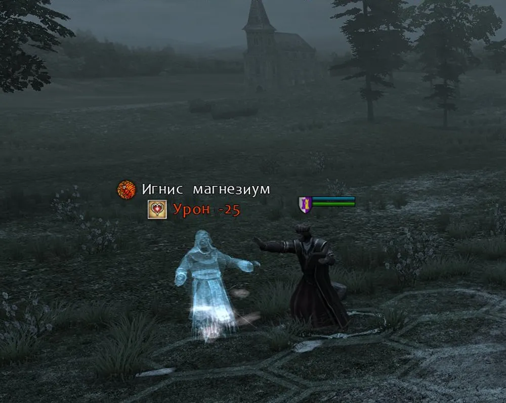 Но тут наступила первая ночь, и лес на другой стороне озера моментально заполнился отрядами призраков, оборотней и прочих мерзких существ. Ринсвинд с сомнением взглянул на притихший отряд и понял, что на встречу с духами лучше отправляться в одиночку. По дороге пришлось уворачиваться от отряда бандитов: мистик знал, что у них есть отравленные стрелы, но не стал пытаться добывать их в одиночку. Зато быстро разобрался с эфемерными врагами: «Игнис магнезиум», «Рубедо»; и дело сделано.