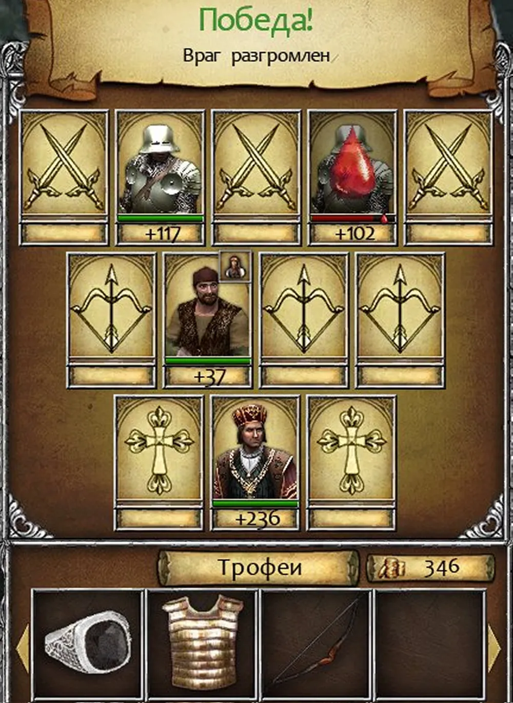 Увы, на этом лёгкая прогулка героя закончилась: во всех остальных вражеских отрядах – патрульных и охраняющих вышки – более половины составляли стрелки; после каждого боя приходилось бежать к часовне. Доставалось не только лучникам; даже копейщики получали тяжёлые ранения.