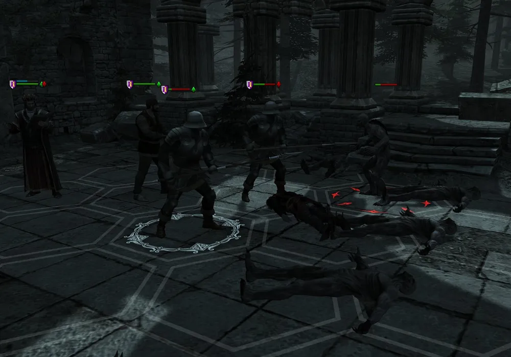 В самом деле, это новичок Аджантис, прислушавшийся к советам проводника и Даниэля изо всех сил избегал встреч со стражей (развалины замка он вообще не нашёл!). И покинул территорию без снаряжения, с минимальным количеством спутников. А чего бояться ему, опытному магу? Хорошо знающему, какие полезные предметы экипировки скрываются в здешних местах. Охрана? Подумаешь! И в сиянии полной луны, озарявшей развалины, закипело почти безмолвное сражение…