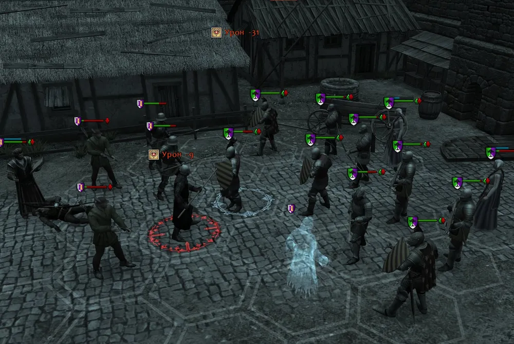 В конце концов, мистик вернулся к построению бойцов «уступом»: второй с левого фланга пикинёр блокировал левофлангового вражеского копейщика; а первый левофланговый пикинёр получал возможность атаковать либо копейщика, либо лучника. Конечно же, он атаковал лучника, уменьшая количество ненавистных стрелков и блокируя их.