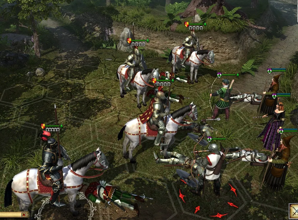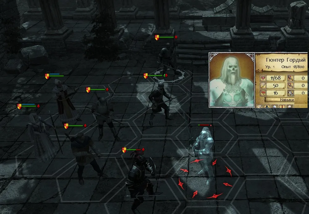 Как только у Урсулы фон Фихтен останется три спутника, остатки отряда «сдадутся в плен». (Ненавижу эту особенность!) Вдова ушла от заслуженной мести? Не бывать этому! Чтобы избежать подобной неприятности, следует построить рыцарей не линией, а уступом; и немного задержать ходы – чтобы Урсула призвала призрака.