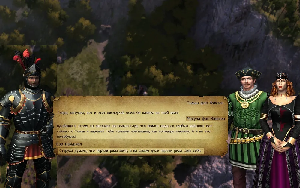 Сэр Найджел дождался, пока раубриттер обратит на него внимание, и увлёк преследователя в лес, заставив спешиться. Камарг рыцаря преспокойно перемещался между деревьев, а разбойничий знак (Кто сказал, что рыцари – не разбойники?! У крестьян на этот счёт своё мнение!) давал возможность устраивать засады, со всеми преимуществами внезапного удара.