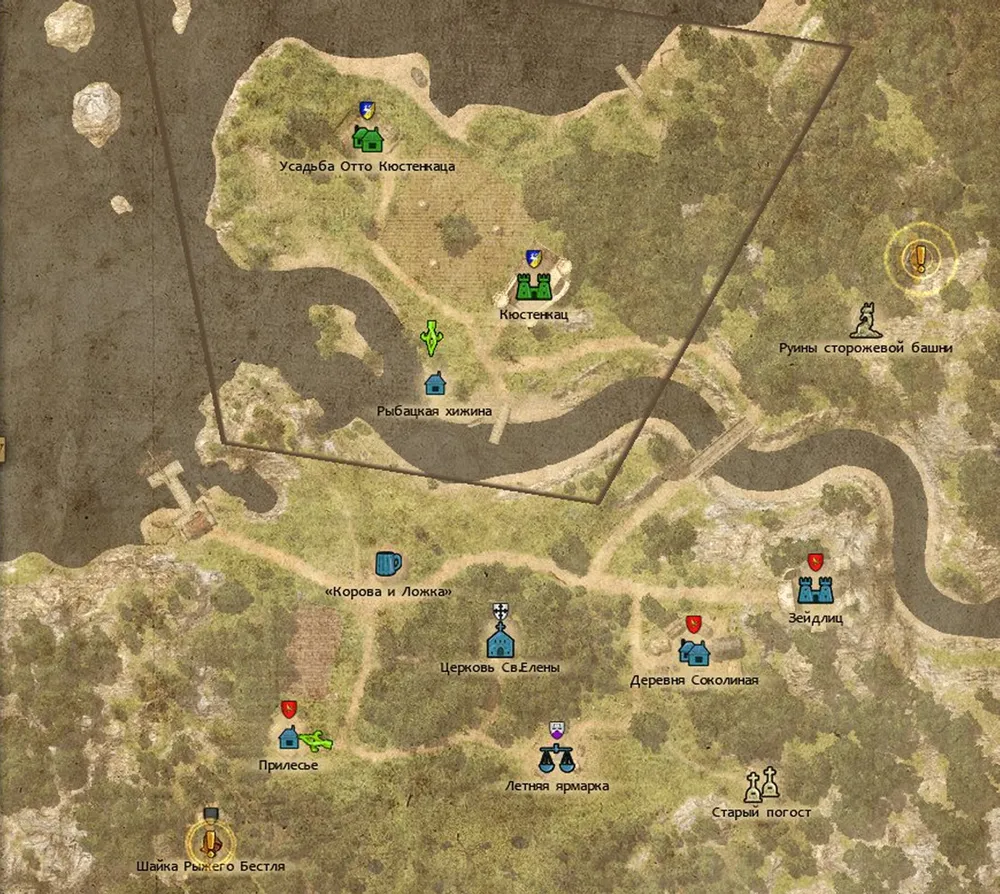 Получив череп, бежим к городу, где с нами желает поговорить множество народа. Но нам нужен только Плебан Штенглин, дающий задание на подмену меча.