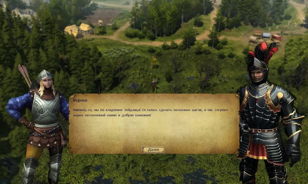 Забираем отряд и идём к служанке. После разговора с ней имеет смысл захватить деревню и забрать оброк. Вообще-то сзади остался замок, но как его штурмовать с такими силами?