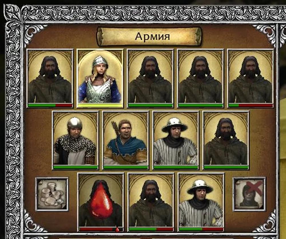 Кого же всё-таки взять в качестве спутников? Лучнице подойдут два эсквайра: в лёгком сражении она станет рядом с ними, в тяжёлом – отойдёт во второй ряд, расставив бойцов прикрытия с интервалом, чтобы блокировали вражескую пехоту.
