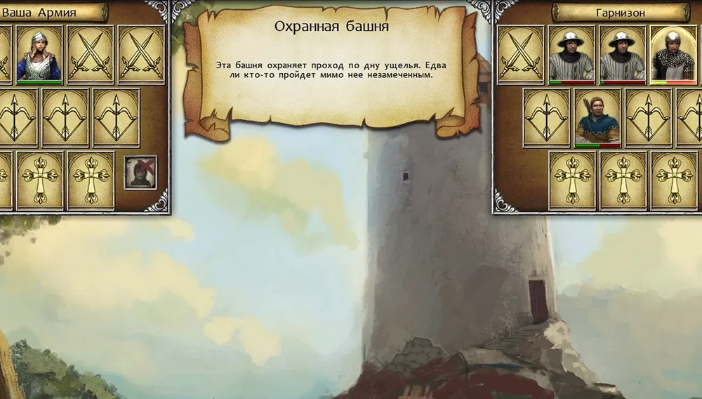 Вы вправе спросить: а зачем нужны воины, сидящие на вышке? После взятия каждого следующего замка ваш отряд увеличивается на одного бойца, итого их может быть девять, не считая наёмников. Есть кем комплектовать войско!