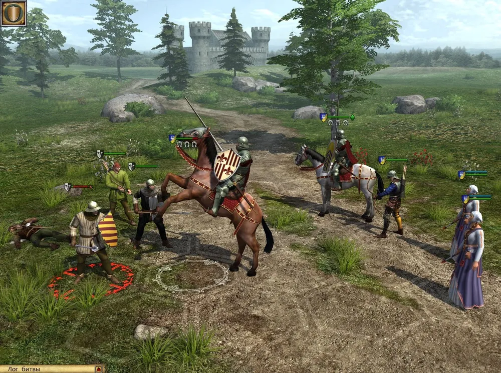 Теперь переходим на другой берег и, уворачиваясь от врагов, бежим к таверне, где покупаем кувшин особого вина. Отыскиваем феодала, каковой не соглашается пить просто так, а требует победить вражеский отряд силами только пехотинцев, для чего предоставляет героям сторожевую вышку. Вот оно!