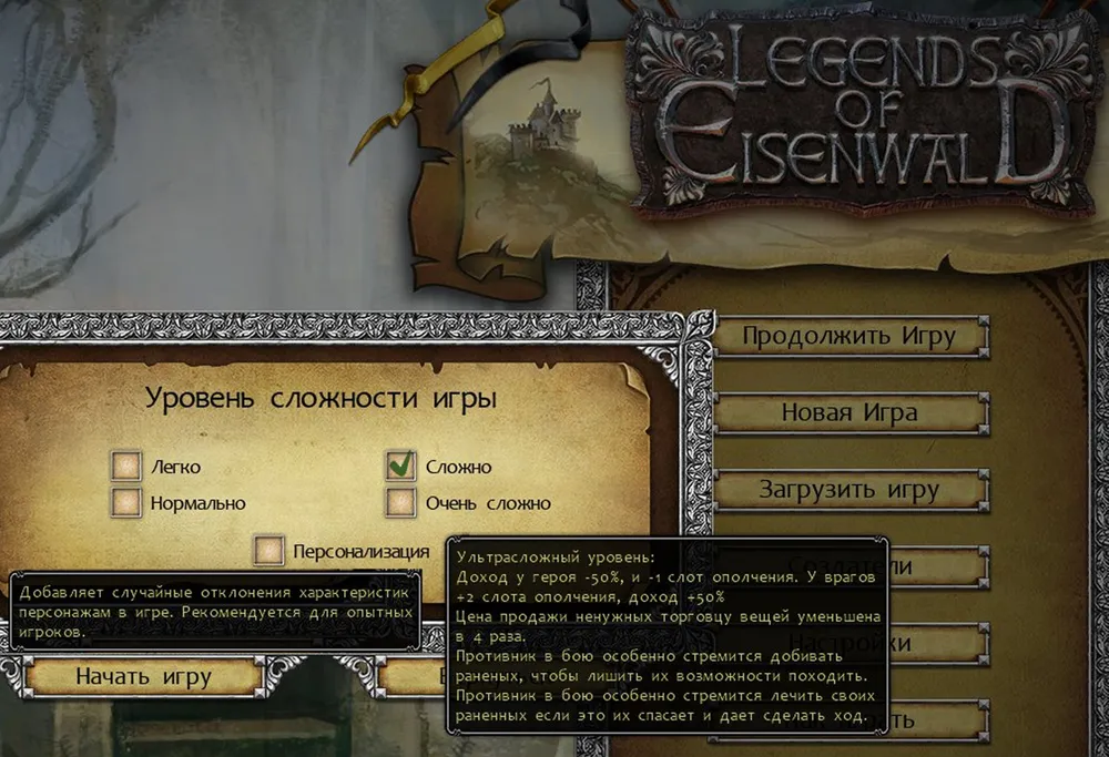 Добро пожаловать в школу! Здесь учат торговать, лечиться, нанимать войска, вести бои и даже штурмовать замки. Словом, всему необходимому. Впрочем, стоп: я забыл упомянуть о важном параметре – уровне сложности. По скриншоту видно, что уровень «очень сложно» действительно невероятно сложен, я вообще не представляю, как играть в таких условиях. Поэтому остановился на «сложном». И прежде, чем разобрался в тонкостях, хлебнул немало лиха. Продолжим общими советами.