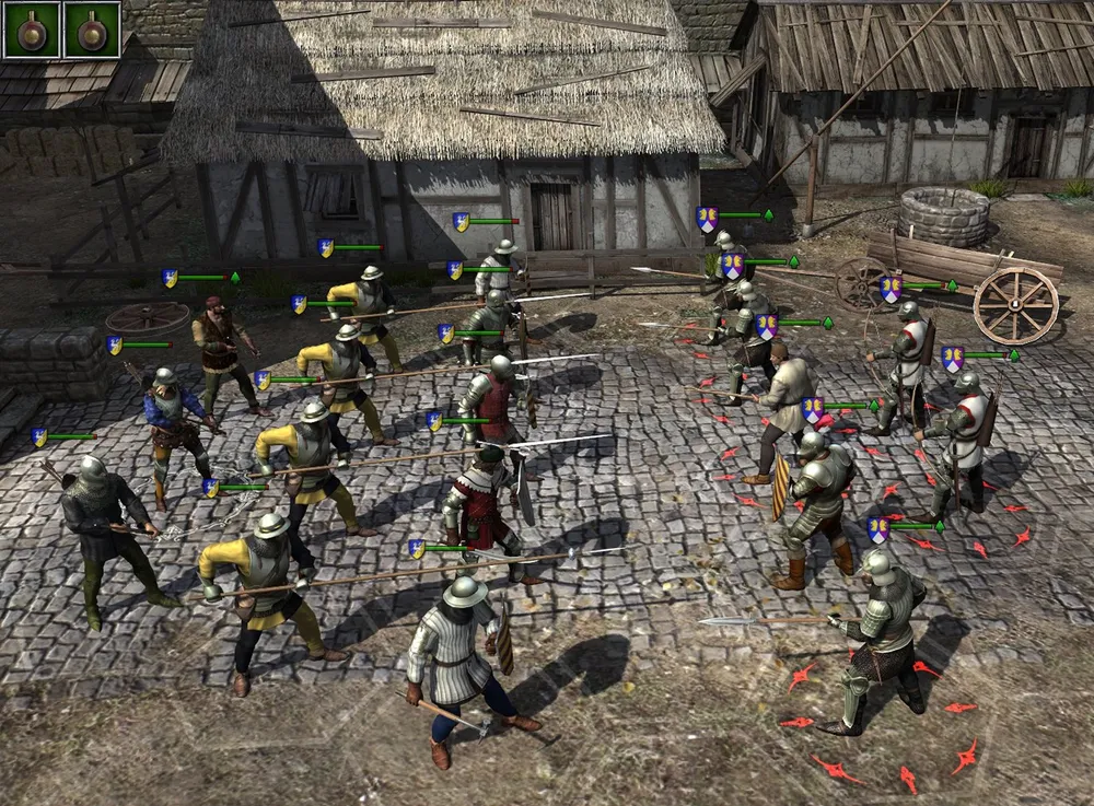 Большое значение имеет расстановка сил перед боем. Бойцы, установленные через одного, полностью блокируют фронт, но это не самый лучший вариант. Иногда их лучше компоновать попарно, чтобы двое наносили удар по одной цели. Лучше никого не ставить напротив копейщика: его придётся атаковать, как ближайшего, а он обязательно нанесёт встречный удар. Копейщиков предоставляйте лучникам, тяжелобронированным воинам или пикинёрам. Если враг сконцентрировал пехоту на одном фланге, поставьте там самого сильного воина, а двух-трёх – на другой фланг. Вместе они уничтожат крайнего вражеского воина и получат возможность атаковать лучников. Пикинёров имеет смысл ставить во вторую линию, первая вражеская атака до них не доберётся, а они своего не упустят. (Но не забывайте оставить им проход!)