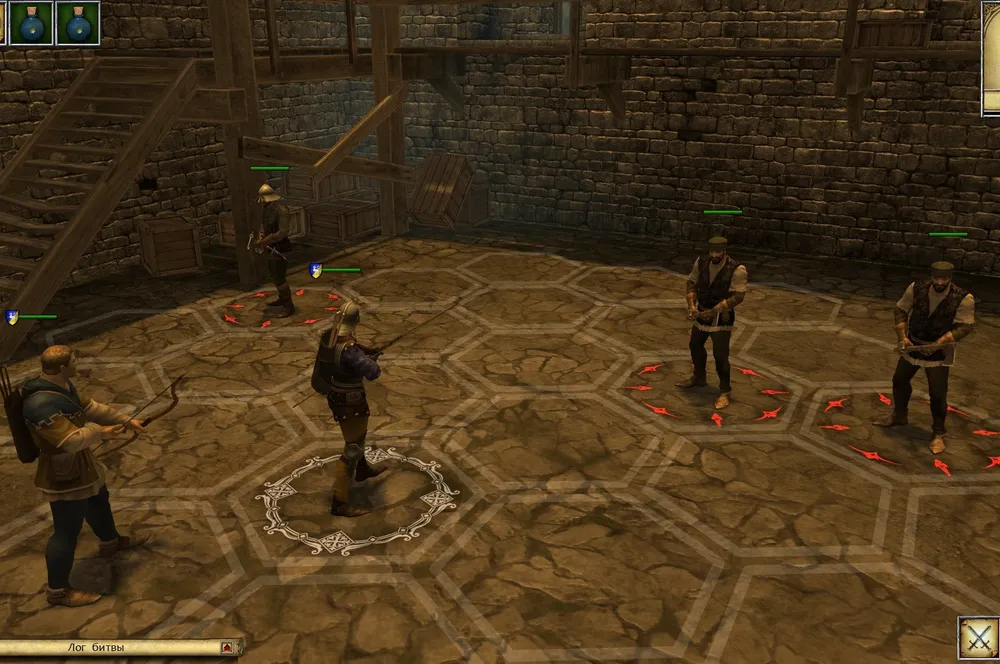 Поэтому налево ходить не стоит, идём к трактиру, вылечиваем отряд и разговариваем только с трактирщиком. Наёмники? К чёрту наёмников, золота им без того мало! Сражаемся с отрядом врага, поднимаемся к развалинам и зачищаем их. Бегом в трактир!