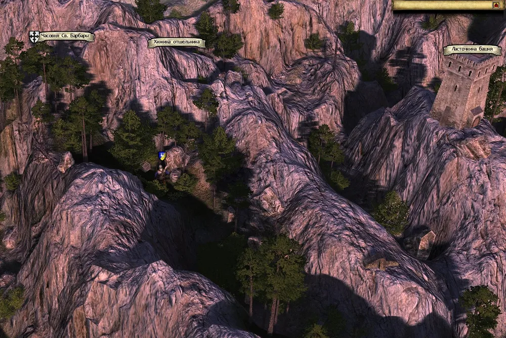 Оставляем в ней израненных бойцов, заваливаем проход и спешим к хижине отшельника; затем - к месту, откуда виден вход в башню ласточки. Забираем сокровище Энцеля.