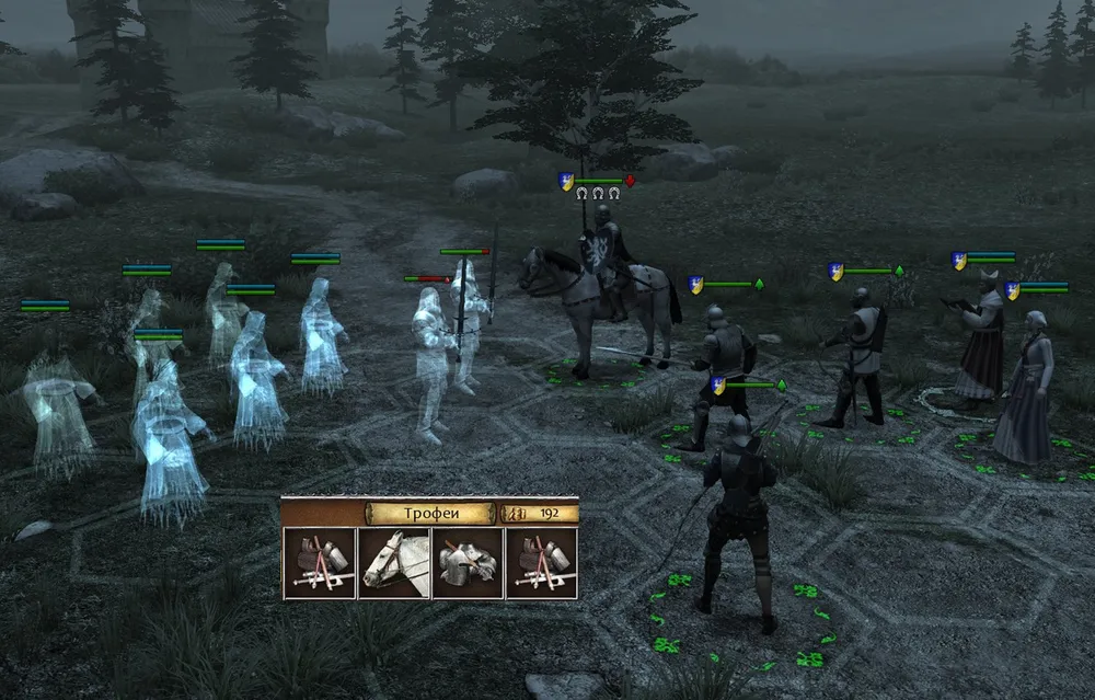 Мало того, что ни лошадей, ни сбруи, ни сёдел на этой карте в продаже нет, так ещё и вражеские кавалеристы никак не хотели подарить трофейного коня. Куда-то пропал даже отряд с камаргом! Много позже выяснилось, куда: противники сдуру напали на сильнейшую группу нежити и потеряли всё, включая жизни. А призраки почему-то оставили лошадь в целости и сохранности: катались на ней, что ли?
