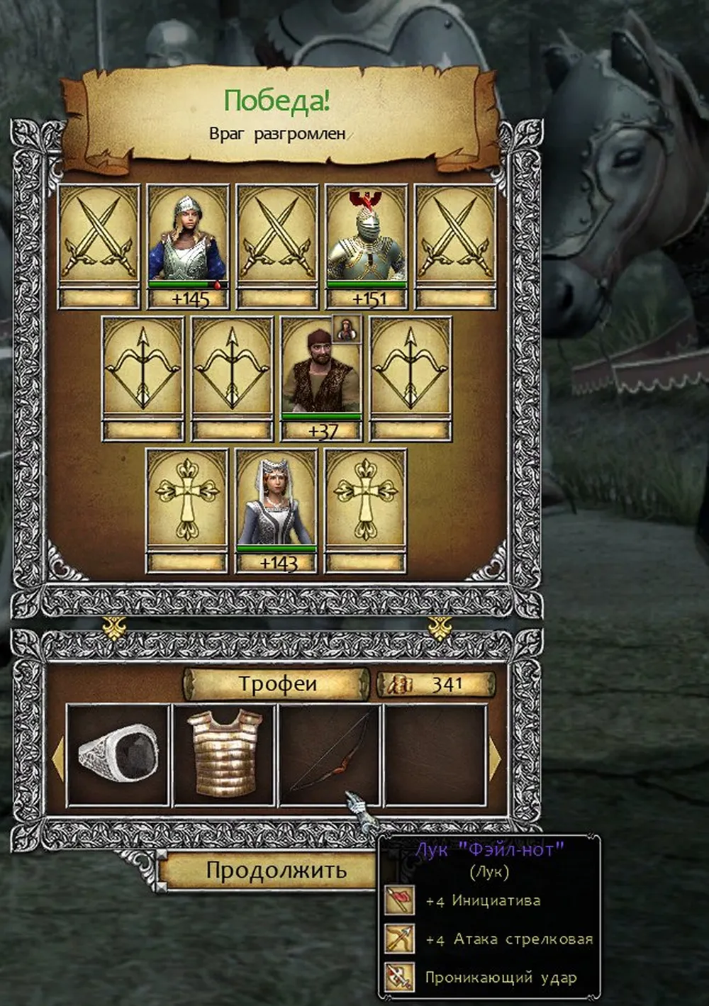 Хорошо рыцарскому клину громить всех встречных-поперечных, баронессе с её командой такой путь не подходит. Прокрадываемся мимо всех вражеских отрядов и, пока не прошла ночь, идём к руинам замка, добывать лучший в игре лук. Успешно!