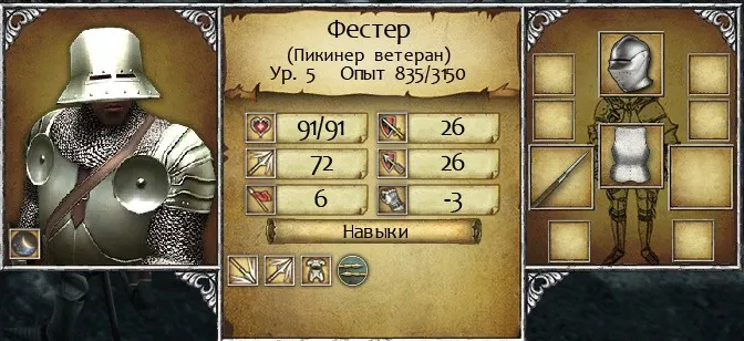 Nota Bene. О том как развивать мистика, можно прочитать в гайде. Отмечу лишь, что для успешного штурма требуется «лидерская» ветка(-25% стартового урона при штурме замка, разные бонусы к рукопашной и инициативе), вышеупомянутый «Боевой щит» и «Вызов призрака».