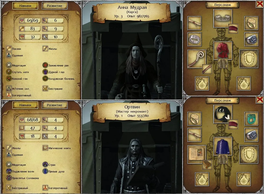 Мастер-некромант первого уровня, наёмник; о нём расскажу особо. Очень не хватало способности мистика «призыв призрака», когда в начале игры увидел некроманта, сразу же нанял – с течением времени состав наёмников может меняться. Некромант исправно получал жалованье, опустошая казну, но расти в уровнях не желал: наберёт опыта до второго, и остаётся на первом. Вот такой «сюрприз» от разработчиков.