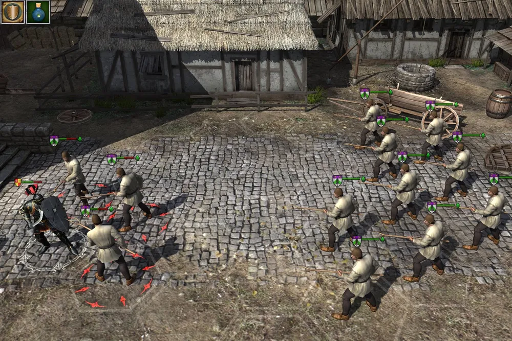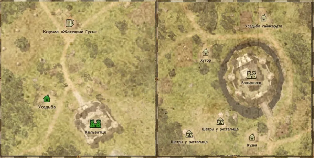 Усадьба (просто усадьба) рядом с замком Кельзитце в этом плане ещё более примечательна. Обычно зачистка вражеской территории начинается с малых строений, и лишь затем переходят к замкам; но не в этом случае. Убедившись, что в усадьбе находится сильный вражеский отряд, штурмуем замок. Через некоторое время после его захвата усадьба переходит под ваш контроль – вместе с гарнизоном! Учитывая, что враги развиваются гораздо быстрее ваших воинов, можно получить в своё распоряжение неплохих бойцов!