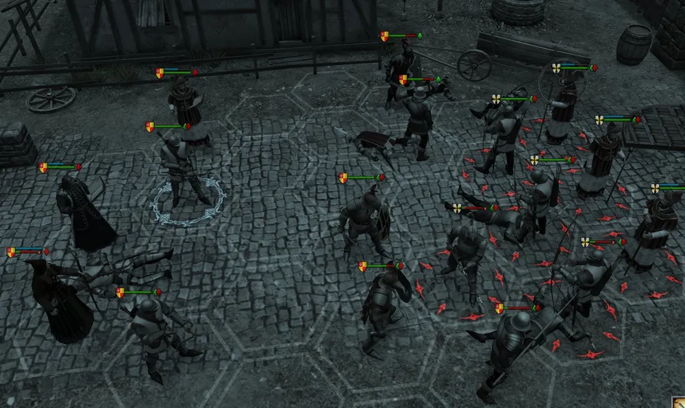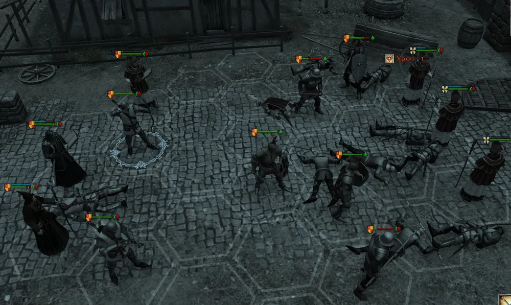 Двор замка архиепископа: стрелки атакуют стрелков, пешие воины – пеших. Убита чародейка, а впереди – второй бой! Положение спасла карга: воины всеми способами избегали атаковать последнего врага, карга применяла на всех нуждающихся «Заживление ран».