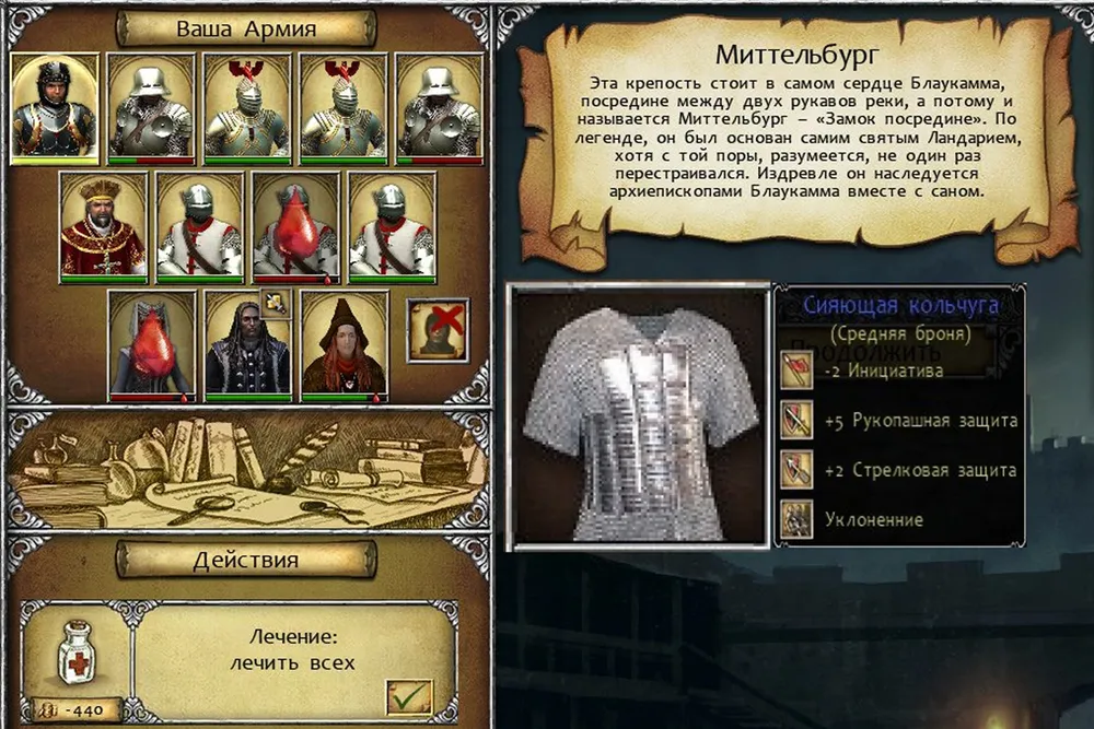 Вот он, главный приз! Эта кольчуга есть только в замке архиепископа, нигде больше. Теперь герой может вооружаться двуручным мечом!