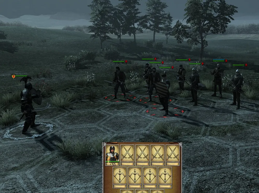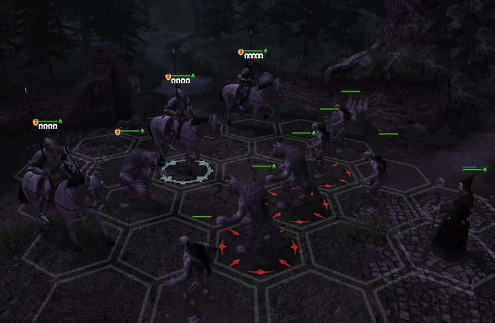 Практически вся шестая карта покрыта лесом, многие квесты также находятся в лесной зоне: каждому из вашей тройки весьма пригодится амулет «Разбойничий знак», дающий преимущества при атаке в лесу или на болотах. Множество дополнительных заданий требуется выполнять в ночное время; бойцы получат преимущество, если будут укомплектованы «Кошачьим глазом». Разумеется, кроме выполнения двух первых условий, всадники просто обязаны быть верхом на Камаргах: пеший враг в лесу тёмной ночью всегда слабее кавалериста (что неплохо иллюстрирует заставочный скриншот: союзный оборотень так и не успел сделать ход).