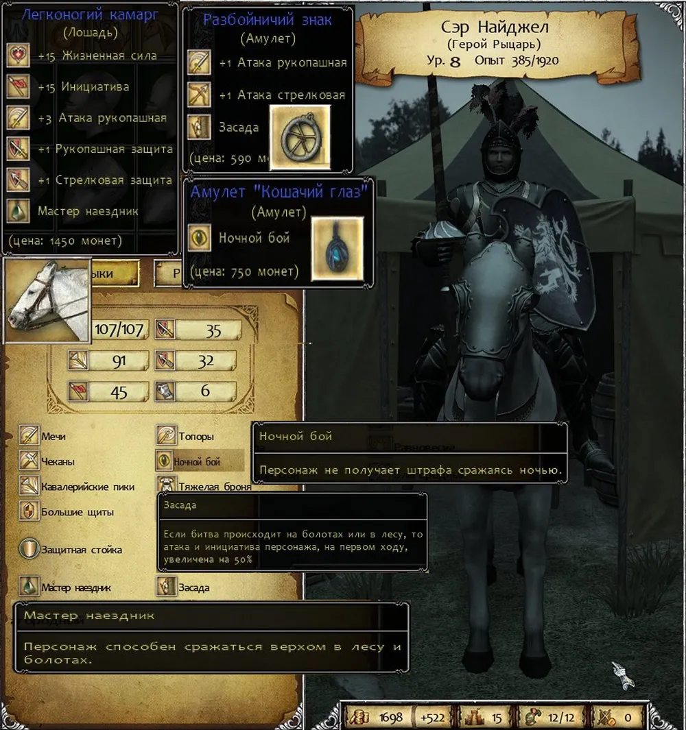 Знаете ли вы, что герой-Рыцарь вполне сможет набрать больше тысячи единиц опыта уже после выполнения всех основных и дополнительных заданий? (Почему только рыцарь? Верхом он наносит по два смертельных удара; пешим – отвечает на каждый нанесённый удар. Вряд ли это получится у одиноких лучницы и мага, слишком слабы; спутники же в разы снизят количество получаемого опыта. Впрочем, один раз я уже недооценил эффективности Мистика – быть может, у вас всё получится!)