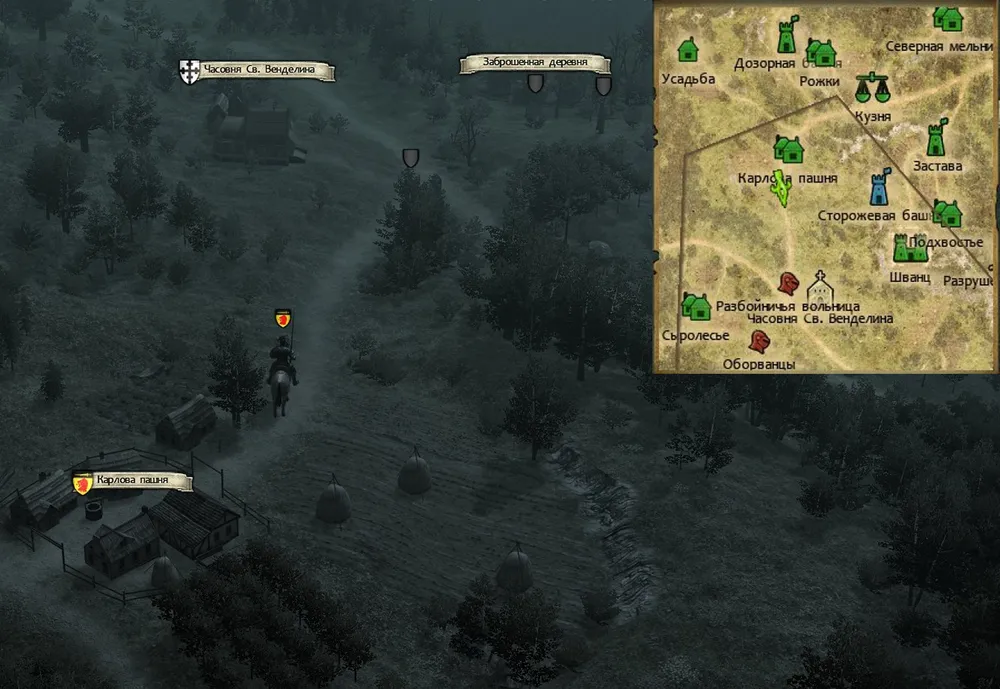 Второе задание – «Две сестры». Ночью идём в заброшенную лесную хижину («Разбойничий знак» и «Кошачий глаз» не забыли?) и подвергаемся атаке сильнейшего отряда (при виде его я решил, что бой проигран). Побеждаем, среди трофеев окажется «Чумная маска» - шлем со свойством магического восстановления. Теперь (если вы забрали с предыдущей карты доспехи Гюнтера Гордого) под вашей командой сразу три Коннора Маклауда! Можно приступать к выполнению главного задания; или сначала попробовать выполнить все дополнительные. Удачи!