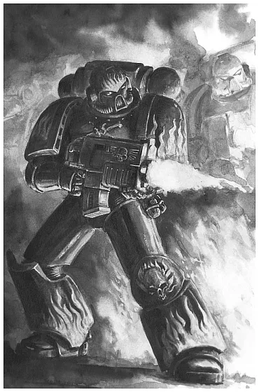 Так началась бесконечная война Легиона Проклятых. Десантники удалили все знаки различия со своих силовых доспехов. Вместо этого их броня теперь была черна и декорирована каждым братом по собственному выбору эмблемами смерти. Большинство братьев использовало сходные символы - скелеты, кости и черепа, корчащиеся в огне чистилища.