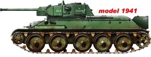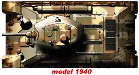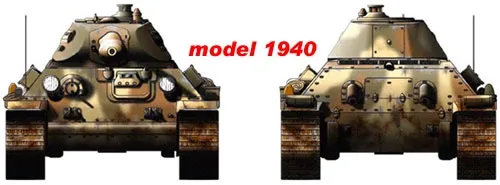 Танк Т-34 создан на базе опытного среднего А-32 и принят на вооружение в декабре 1939 г. Конструкция этой машины знаменует собой качественный скачок в отечественном и мировом танкостроении. В нем впервые органично сочетаются противоснарядное бронирование, мощное вооружение и надежная ходовая часть. Противоснарядное бронирование обеспечивается не только применением катаных броневых листов большой толщины, но и рациональным их наклоном. При этом соединение листов осуществлялось методом ручной сварки, которая в ходе производства была заменена автоматической сваркой. Танк вооружался 76,2-мм пушкой Л-11, которая была вскоре была заменена более мощной пушкой Ф-32, а затем и Ф-34. Таким образом, по вооружению он соответствовал тяжелому танку КВ-1.