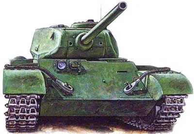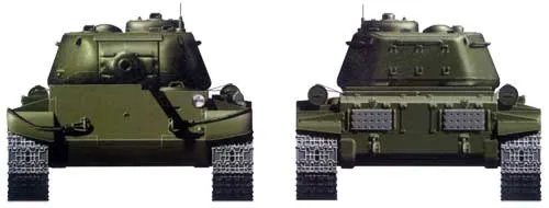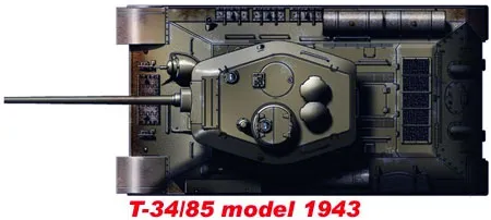 На первых серийных машинах устанавливалась 85-мм пушка Д-5Т, которую впоследствии заменили пушкой ЗИС-С-53 того же калибра. Ее бронебойный снаряд массой 9,2 кг с расстояния 500 и 1000 метров пробивал соответственно 111-мм и 102-мм броню, а подкалиберный снаряд с расстояния 500 метров пробивал броню толщиной 138-мм. (Толщина брони "Пантеры" равнялась 80 - 110-мм, а "Тигра" - 100-мм.) На крыше башни была установлена неподвижная командирская башенка со смотровыми приборами. На всех машинах устанавливались радиостанция 9РС, прицел ТШ-16, средства постановки дымовых завес. Хотя вследствие установки более мощной пушки и усиления броневой защиты вес танка несколько увеличился, благодаря мощному дизельному двигателю подвижность танка не снизилась. Танк широко использовался во всех сражениях завершающего этапа войны.