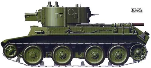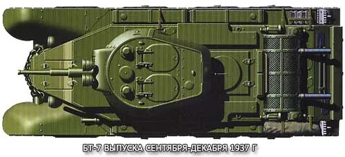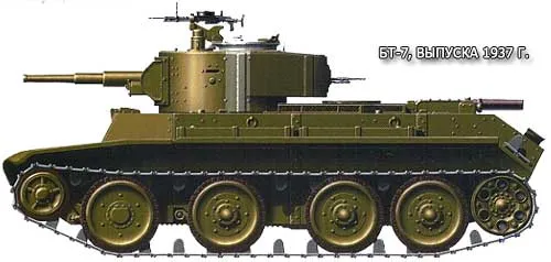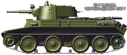 - БТ-7 - линейный танк без радиостанции; с 1937 года выпускался с конической башней;