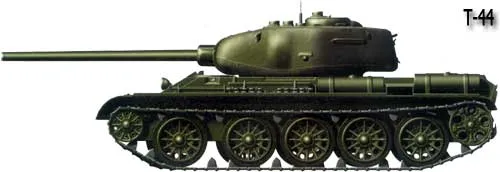 Качественное превосходство советской бронетанковой техники над соответствующей техникой противника обеспечивалось во многом благодаря непрерывной работе танковых КБ над созданием новых образцов вооружения. Одной из таких новинок стал средний танк Т-44, принятый на вооружение в 1944 году. При сохранении классической компоновки конструкторам удалось разместить дизельный двигатель поперек продольной оси танка. В сочетании с уменьшением размеров агрегатов силовой передачи это позволило уменьшить высоту корпуса на 300-мм по сравнению с Т-34 и сместить башню с 85-мм пушкой в центр корпуса. Это, в свою очередь, дало возможность увеличить толщину лобового листа корпуса до 120-мм без перегрузки передних катков.