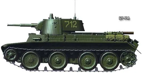 - БТ-7А — артиллерийский танк; вооружение: 76,2-мм танковая пушка КТ-28 и 3 пулемета ДТ;