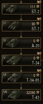 В обзоре представлена только ветка танков, по которой прокачивается т-54.