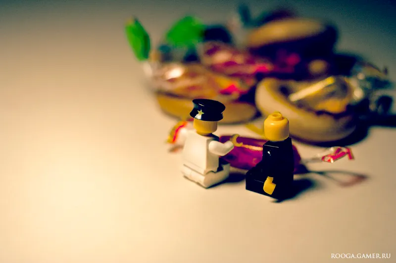 Сделал намедни небольшую постановку с человечками LEGO дома. Конструктор для съемок предоставил мой племянник. За освещение спасибо настольной лампе. За картинки - старенькой, но доброй зеркалке :)