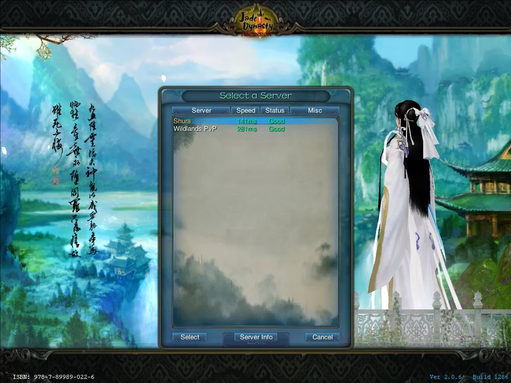 Итак, клиент скачан, обновлен и запущен. Моему взору предстает экран выбора сервера (да, еще, для удобства пользователей сервера разделены по территориям: Восток США, Запад США и Европа, чтоб видимо пользователи не мучались с часовыми поясами), а на фоне вероятно красивая китайская девушка, платье и волосы которой развевается на ветру, смотрит на открывающиеся красоты водопада. Выбираю сервер Shura.