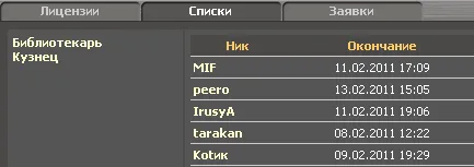 А при выборе лицензий появляется список действующих библиотекарей/кузнецов: