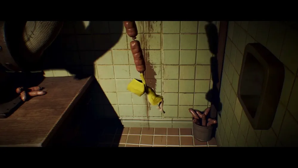 Если же отвлечься от пронизывающей игру атмосферы саспенса, то в остальном «Кошмарики» представляют собой 3D платформер c решением головоломок и исследованием мира. Глобально сюжет игры линеен, мы все время будем двигаться вперед, от точки старта и до выхода из Чрева, попутно преодолевая разного рода препятствия. Вместе с тем дизайн отдельных уровней, прежде всего локаций с монстрами, допускает несколько путей и даже тактик их прохождения. В демо это, кстати, наглядно показывается на примере кухни. Первое, что приходит на ум, когда мы попадаем к Повару, постараться прошмыгнуть у него за спиной, бегом или ползя на кортах. Но это лишь один из доступных нам способов преодолеть кухню. Присутствующие в игре механики позволяют вместо того чтобы пассивно подстраиваться под алгоритм перемещения Повара, до определенной степени управлять им. Издавая свист или хлопая дверцами духовок, Шесть может заставить его пойти одним маршрутом, а сама тем временем прокрасться другим. Вообще, исследованию мира и взаимодействию с предметами окружения в «Little Nightmares» отводится весьма значимая роль. «Практически любую область у нас можно исследовать, – говорит Дейв, – и найти в ней что-то интересное. Тот же, кто быстро пробежит данное место и не найдет этого, не узнает нечто важное, имеющее отношение к рассказываемой нами истории и помогающее понять, что тут на самом деле происходит.» Таким нехитрым образом игра пытается поощрить проявление любопытства и стимулировать игрока отклониться от магистрального пути. Кроме того, интерактивность окружения делает решение головоломок неочевидным. Нам придется перепробовать несколько вариантов, повзаимодействовать то с одним предметом, то с другим, прежде чем мы найдем выход из этой локации и попадем в следующую. Некоторые головоломки «растянуты» на несколько локаций, как, например, головоломка с мясорубкой, кладовой и «колбасной тарзанкой» в демо. Видать, годы работы над платформерами для консолей Sony не прошли для Tarsier Studios бесследно.