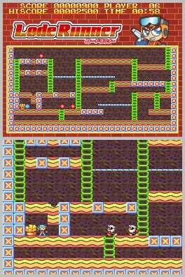 По моему личному мнению эта самая лучшая игра в серии. После нее я больше не видел игр этой серии. На прошлой неделе мне на глаза попался Lode Runner для Nintendo DS. Это таже класическая аркада, с теми же уровнями, усовешенствованной графикой Денди, на японском языке ) . На англиском насколько я понял она так и не выходила. Прошел целиком на одном дыхании.Выглядит вот так.