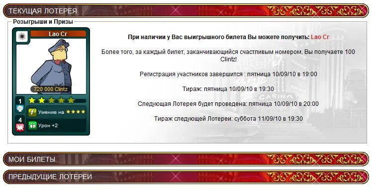 Каждый день в Urban Rivals проходит лотерея. Куда же нынешним играм без лотерей?