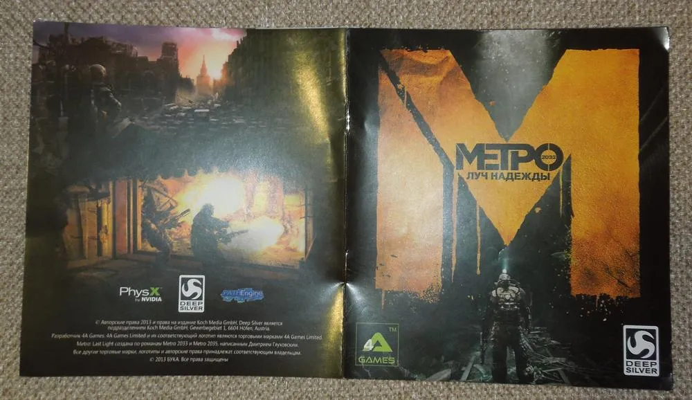 Внутри имеется перегородка, в верхней секции находятся игровой диск, руководство и карта метро, в нижних отсеках - металлические фигурки.